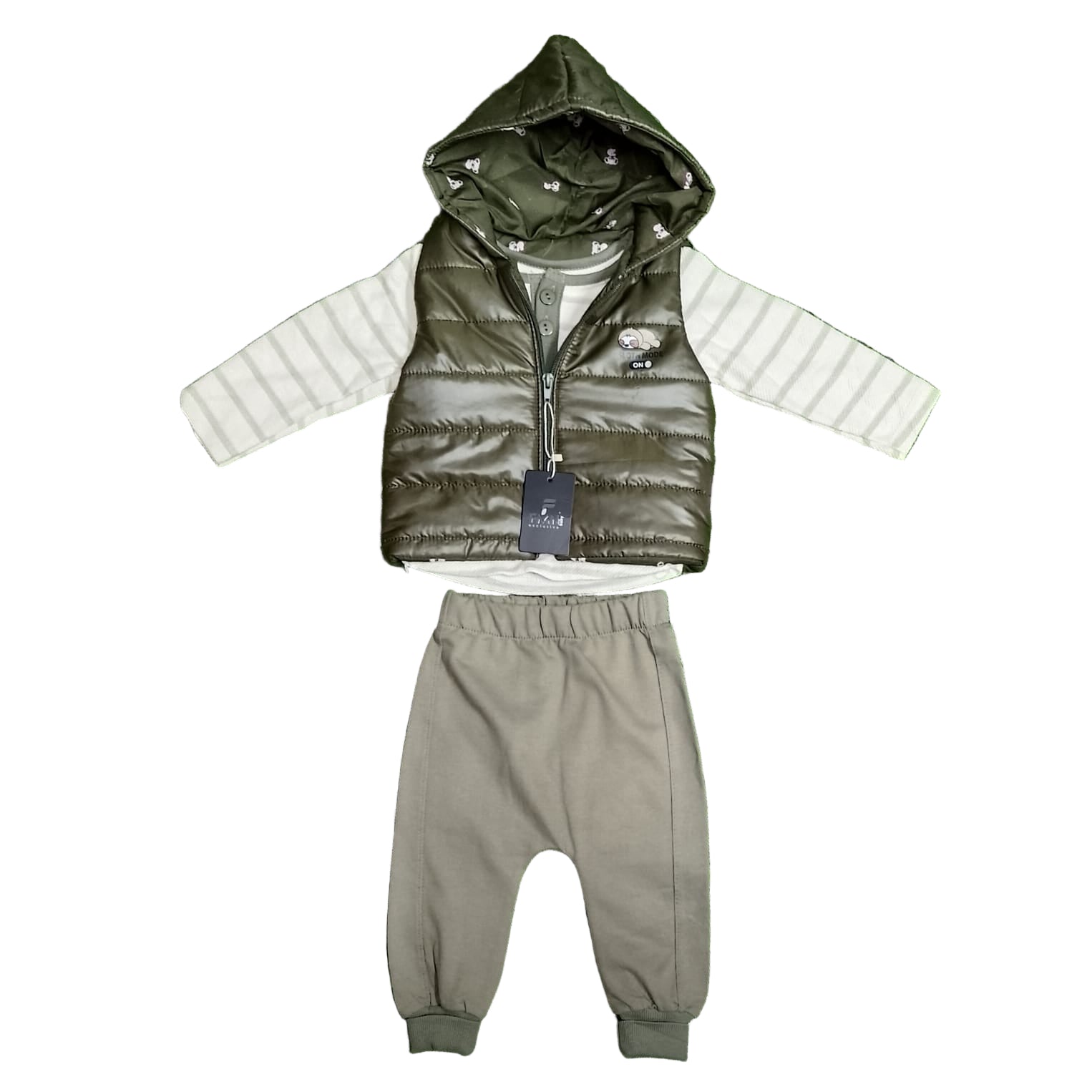 On-Trend Style: The puffer vest and jogger combination gives this newborn or toddler outfit a fashionable, modern look.