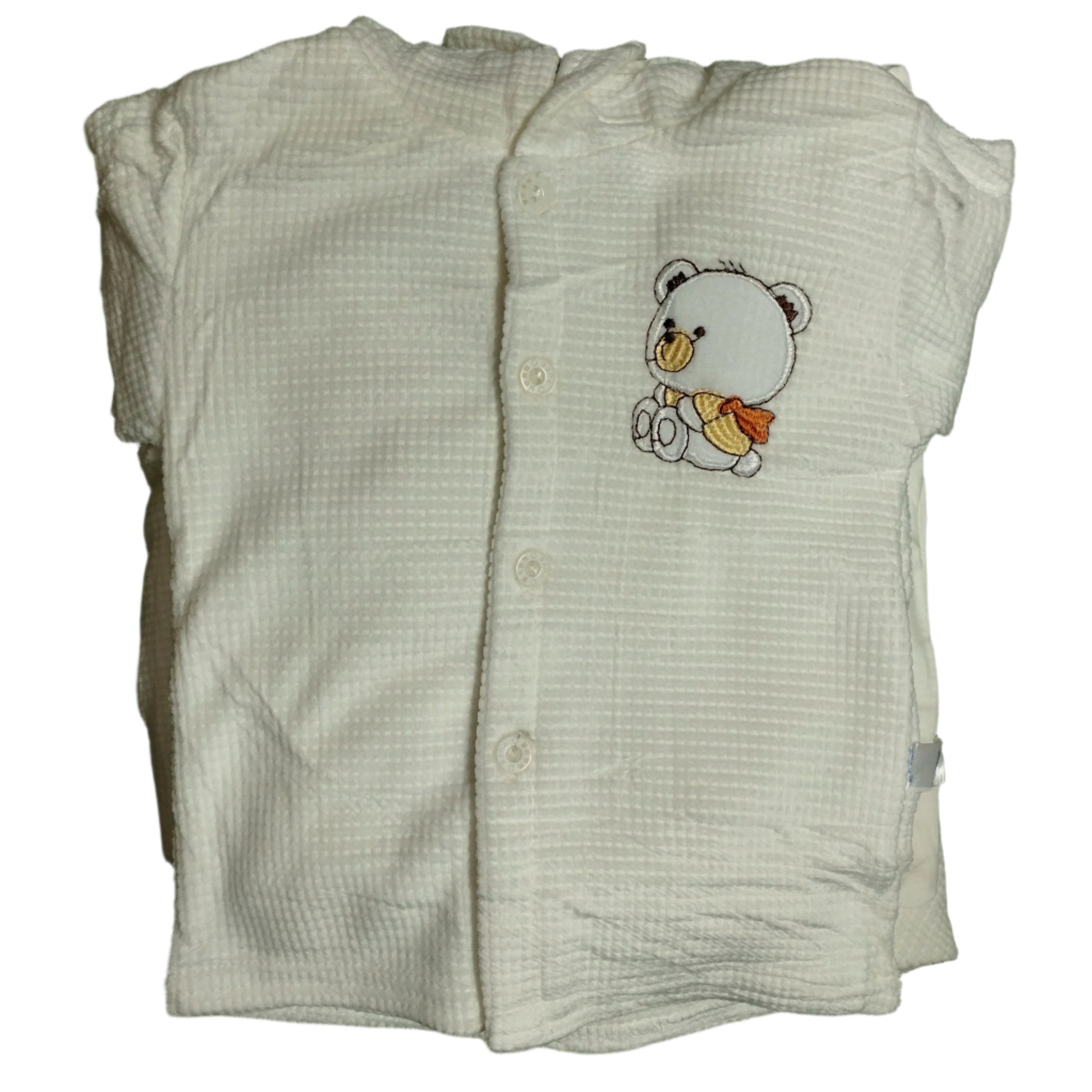 The button-front top is easy to put on and take off, and it features a sweet embroidered teddy bear holding a heart—a classic and loving design. This comprehensive set is a perfect baby shower gift or an essential addition to your hospital bag. You'll have all the basics covered for your new baby's first days.