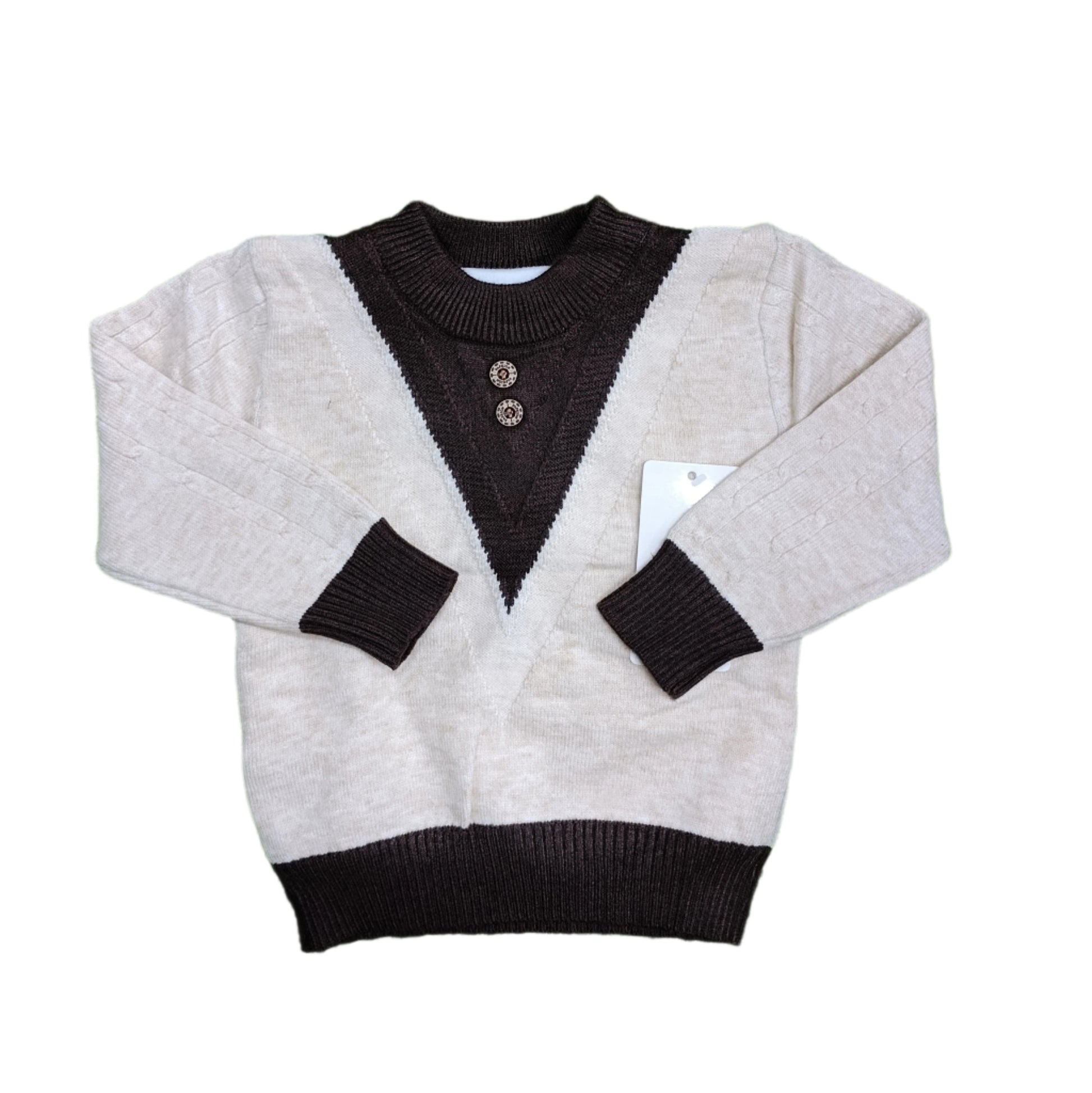 Elevate your wardrobe with the stylish SWEATER V, a comfortable and versatile V-neck sweater perfect for cooler days. Featuring a chic color-block design with a contrasting V-shaped detail and button accents on the collar, this sweater offers a modern yet timeless appeal. Available in sophisticated color combinations like maroon/grey, beige/black, and grey/black, it's an ideal choice for adding a touch of elegance and warmth to your casual or semi-formal attire in Kenya.